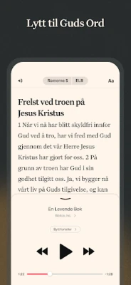 Opplev Guds Ord på en helt ny måte med Bibel-appen, en kraftfull følgesvenn for din åndelige reise. Få umiddelbar tilgang til et enestående utvalg av bibeloversettelser – over 2000 versjoner på mer enn 1300 språk, inkludert populære norske utgaver som Bibelen 2011, Norsk Bibel 88/07 og Bibelen 1978/1985. Enten du foretrekker å utforske tekstene tilkoblet internett, eller ønsker å fordype deg i Skriften offline ved å gjøre utvalgte oversettelser tilgjengelige for frakoblet bruk, gir Bibel-appen deg friheten til å engasjere deg med Bibelen hvor som helst og når som helst. Med lyttetjenester for utvalgte versjoner og en praktisk widget for Dagens vers, blir daglig bibellesing en sømløs del av din rutine.