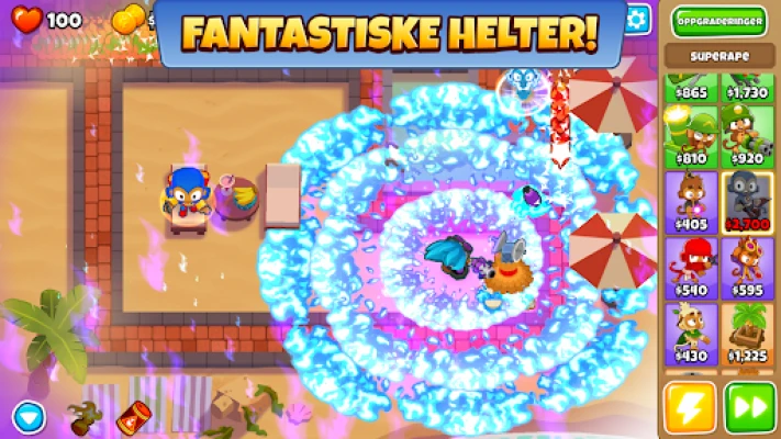 Kjernen i din strategi ligger i de 25 kraftfulle apetårnene, hver med tre unike oppgraderingsstier og aktiverte ferdigheter. Lås opp de formidable Paragon-oppgraderingene som omdefinerer styrke, eller velg blant 17 karismatiske Helter, hver med signaturoppgraderinger, spesialferdigheter og muligheten til å tilpasse utseendet deres. Forsterk din innsats med over 100 Apekunnskap-metaoppgraderinger, og bruk Krefter og Hurtigaper for å overvinne de mest gjenstridige bloon-truslene. Del spenningen med venner i 4-spiller samarbeidsmodus, enten offentlig eller privat, og koordiner forsvaret mot den evige bloon-invasjonen.