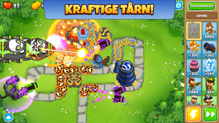 Ninja Kiwi er dedikert til å berike Bloons TD 6 kontinuerlig, med hyppige oppdateringer som stadig introduserer nye funksjoner, innhold og utfordringer. Vi verdsetter din tid og støtte, og streber etter at dette skal være det fremste strategispillet du opplever. Din strategiske reise er viktig for oss. Bloonsene venter ikke på at noen skal sprette dem – spiss dartpilene dine og begynn ditt episke forsvar i Bloons TD 6!