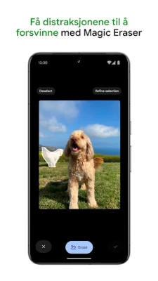 Gjør deg klar for en revolusjon innen bilderedigering og organisering. Google Foto benytter banebrytende AI-baserte verktøy som lar deg utføre kompliserte endringer med bare noen få trykk. Fjern uønskede elementer sømløst med Magisk viskelær, skjerp uskarpe motiver med Fjern uskarphet, og juster belysningen perfekt med Portrettlys. Google Foto rydder også opp i ditt digitale liv ved å gruppere duplikater og lignende bilder, samt tilbyr smarte mapper for skjermbilder, dokumenter og personlige album. For den ultimate personvern, kan sensitive bilder og videoer lagres i en låst mappe, beskyttet av enhetens skjermlås. Og når du leter etter det ene spesifikke bildet, er enkel søking din beste venn – søk med naturlige fraser som «Anna og jeg som ler» eller «Kajakkpadling på en innsjø omgitt av fjell», og la Google Foto finne det på et øyeblikk. Utforsk verden i bildene dine med Google Lens, som lar deg identifisere tekst og objekter for å lære mer og utføre handlinger direkte fra appen.