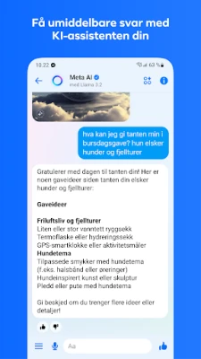 Opplev en ny dimensjon av hjelp og kreativitet med Meta AI, din personlige assistent for spørsmål, veiledning, leksehjelp eller som en inspirerende partner for bildeskaping og -redigering. Samle venner og familie i delte album for å gjenoppleve ferier og feiringer, organisere minner enkelt i gruppechatter. Trenger du å sende store dokumenter? Messenger lar deg dele Word-, PDF- eller Excel-filer på opptil 100 MB direkte i chatten. Og hvis du er for rask på avtrekkeren, kan du enkelt redigere eller angre meldinger i opptil 15 minutter etter sending. Nye bekjentskaper legger du til uten bryderi ved å skanne en QR-kode eller dele din egen lenke.
