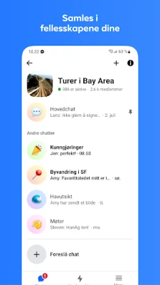 Med Messenger holder du enkelt kontakten med venner og familie, uansett hvor de befinner seg. Denne gratis meldingsappen lar deg utforske felles interesser, styrke fellesskapet ditt, og uttrykke deg med mer enn bare tekst. Alt samlet på ett sted.