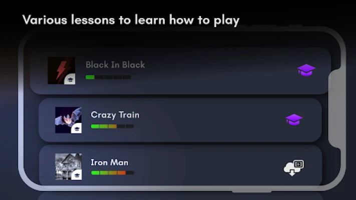 Dykk ned i læringens gleder med over hundre detaljerte bassgitartimer, designet for å veilede deg fra dine første toner til avanserte riff. Koble deg til interaktive looper som lar deg spille sammen med profesjonelt utformede backing tracks, og perfeksjoner din timing og følelse. Real Bass er mer enn bare et spill; det er en utviklingsplattform som stimulerer både kognitive ferdigheter og finmotorikk, og gjør læringsprosessen engasjerende og effektiv. Opplev en autentisk følelse med et komplett 22-bånds gripebrett, der du selv velger mellom en klassisk 4-strengs eller en utvidet 5-strengs bass, alt med justerbar skalastørrelse for maksimal komfort.