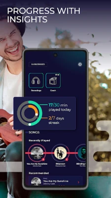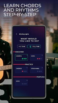 Roadie Coach tilbyr en omfattende tilnærming til å lære grep og slag. Visualiser presis fingerplassering på gripebrettet og få umiddelbar tilbakemelding på nøyaktigheten av notene dine, slik at du kan finjustere teknikken i sanntid. Når grepene sitter, er neste steg å mestre rytmen. Følg synlige veiledere og spill med til backing-spor, der tempoet gradvis øker til du kan holde tritt med originalhastigheten. Denne trinnvise metodikken sikrer at du bygger et solid grunnlag, fra enkeltgrep til flytende akkordoverganger.