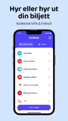 Tickital forenkler handel med digitale billetter. Appen tilbyr en rask og smidig plattform for å leie og leie ut billetter til kollektivtransport samt kamper i fotballens Allsvenskan. Opplev sømløs deling av billetter.